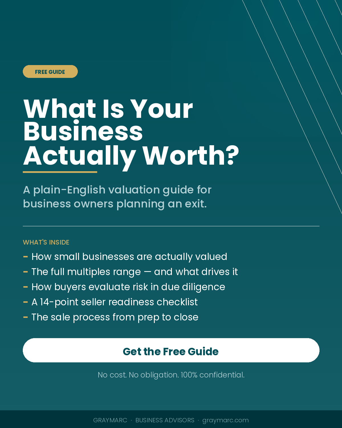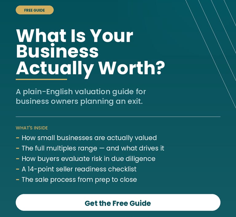 Most owners don't know their number until they're already in a conversation with a buyer. This free guide walks you through how businesses are valued, what drives your multiple up or down, and what buyers are really evaluating before they write a check.